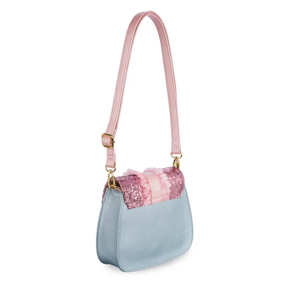 Adoptez un style féerique avec ce sac à bandoulière La Belle Au Bois Dormant ! Admirez ce modèle pastel orné d’esquisses, de broderies, de paillettes et de volants, entre autres merveilles.